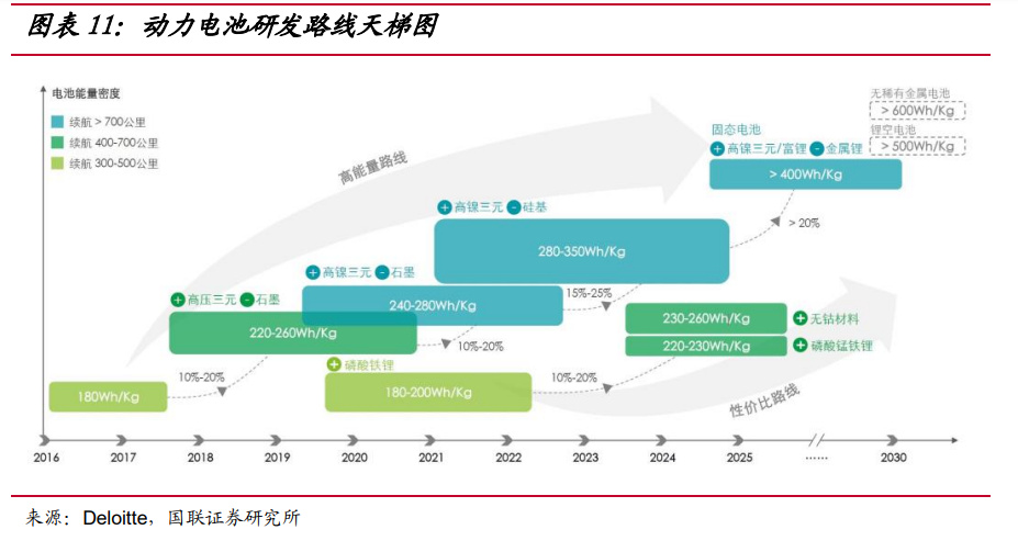 高镍三元+硅基负极为车辆的长续航里程提供保障。《中国制造 2025》中明确了 动力电池的发展规划:2020 年,电池能量密度达到 300Wh/kg;2025 年,电池能量 密度达到 400Wh/kg;2030 年,电池能量密度达到 500Wh/kg。4680 的能量密度可 以达到 300Wh/kg 级别,与动力电池发展规划同频。