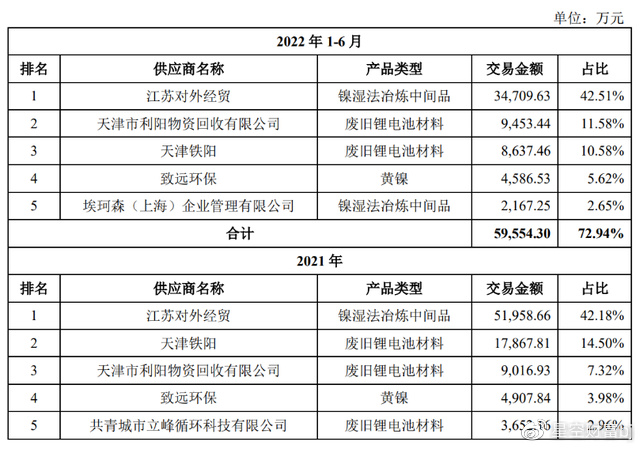 从西恩科技披露的的前五大供应商来看,缺少强有力的货源方,比如说整车厂或是电池生产商。《招股说明书》中提及,西恩科技正在推进与锂电池生产厂商及新能源汽车主机厂关于废旧锂电池回收的战略合作。然而,对于具体情况尚不得而知。