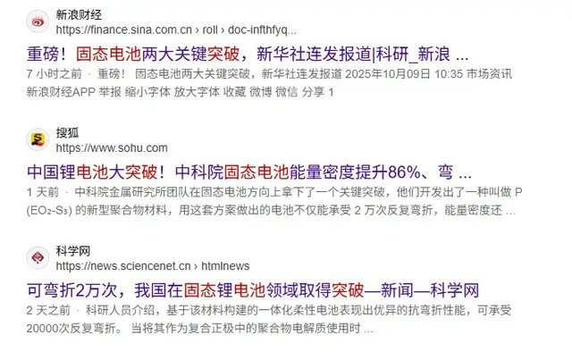 关于固态电池,近期各大官方媒体广泛报道了两项重要进展。